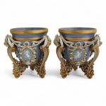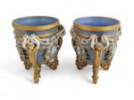 dans le goût de SEVRES Paire de cache pot en porcelaine à décor polychrome et or...