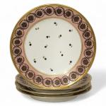 PARIS - attribué à DAGOTY Suite de quatre assiettes rondes en porcelaine à décor polychrome et or XIXème D.: 22.2 cm