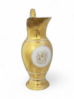 PARIS Aiguière en porcelaine à décor or, chiffrée dans un médaillon Epoque Restauration H.: 31 cm (le bec verseur restauré)