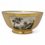 PARIS - Manufacture HALLEY Bol rond en porcelaine à décor en grisaille et or, marqué Epoque Restauration H.: 9.2 cm D.: 18.5 cm