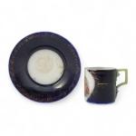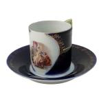 TASSE et SOUS-TASSE en porcelaine à décor de scène animée en polychromie sur fond bleu lapis