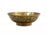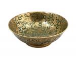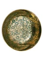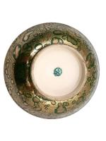 SEVRES Coupe ronde en céramique à décor vert et or, marque en creux au dos SMF Sèvres pour Jean Mazeaud et Jean Faverot H.: 9 cm D.: 25.5 cm