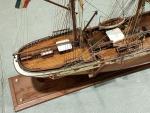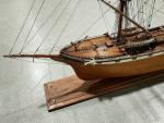 L'auteur de cette importante maquette (2,35 cm H.T.), Charles Rondet, était l'un des plus importants canotiers installés sur les bords de l'Erdre à Nantes. Son chantier, situé sur l'île de Versailles (alors appelée île Legall du nom de son propriétaire) avant 1890 est agrandi en 1893. Il produit des canots de sauvetage, notamment pour les chantiers Dubigeon, des baleinières à clin, des canots de services pour les ports et la Marine Nationale. Il a réalisé en 1902, le Suzette II, un très joli canot de plaisance disposant d'un moteur à explosion, l'un des plus anciens existant en France, classé Monument Historique en 2002. Il dispose toujours de sa plaque de bronze mentionnant son constructeur " Ch. Rondet, constructeur de canots, Ile de Versailles, NANTES ". Ce chantier était réputé à l'époque. Charles Rondet ne s'est pas contenté de construire des canots, réalisant des yachts et voiliers de régate sur commande, notamment une goélette de vingt deux mètres pour un industriel nantais, le plus grand voilier construit sur l'Erdre. En 1903 il réalise son propre yacht de quinze mètres, baptisé le Cygne, présenté à la grande exposition de Nantes 1904, revendu en 1912.