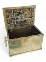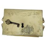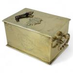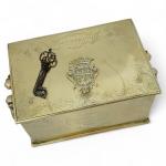 COFFRET DE VOYAGE couvert en laiton à décor gravé de fleurs et frises avec la mention "S. Gaetano Cacciari 1759", l'intérieur du couvercle avec une importante serrure à complication, poignées latérales, gravé au dos "Fra. Remiggio Cappuccino Fecerin Roma 1759"