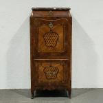 SECRETAIRE à doucine en bois de placage et marqueterie de damiers dans des réserves, ouvrant à deux portes surmontées d'un abattant et d'un tiroir, dessus de marbre