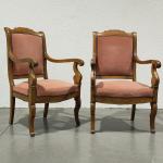 Paire de FAUTEUILS à crosses, en bois naturel Epoque Louis Philippe