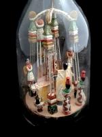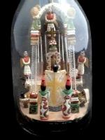 NEVERS Prêtre célébrant la messe devant son autel en verre filé, bois et papier, dans une bouteille en verre soufflé XIXème H.: 30 cm