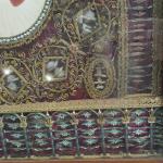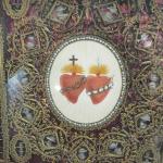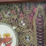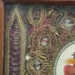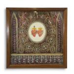 CADRE RELIQUAIRE à paperolles, comprenant les reliques présumées d'environ 130 saints 50 x 50 cm hors tout (quelques manques)