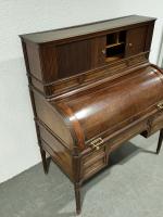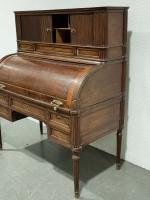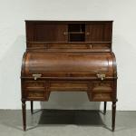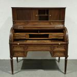 BUREAU CYLINDRE en acajou et placage d'acajou ouvrant à quatre tiroirs en façade, un cylindre dégageant un intérieur compartimenté, surmonté de trois tiroirs et deux rideaux, les montants cannelés et rudentés