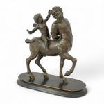 d'après l'ANTIQUE Centaure et un ange Bronze patiné, sur un socle en bois H. totale: 32.5 cm