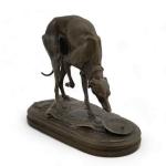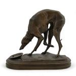 ECOLE FRANCAISE fin XIXème Levrette Bronze patiné, monogrammé A.J. sur la terrasse H.: 16 cm