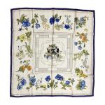 HERMES Paris " Quai aux fleurs" par Hugo Grygkar 1ere édition en 1952 re 1990/2006 Carré en soie imprimée fond creme bordure bleu 90 x 90 cm
