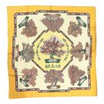 HERMES "bonzai" Carré soie imprimé fond orangé 90x90