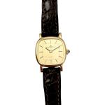BAUME et MERCIER MONTRE bracelet de dame boitier or mécanisme quartz sur bracelet cuir usagé dim boitier 2x2 cm