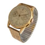 CHRONOGRAPHE SUISSE MONTRE bracelet homme boitier or bracelet élastique métal doré mouvement mécanique fond abimé poids brut 67 g
