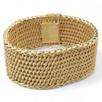 BRACELET semi rigide en or jaune mailles tressées poids 75 g long 18 cm haut 28 mm