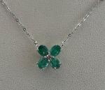 COLLIER en or blanc orné de 4 émeraudes de taille ovale formant une fleur pour 1.40 carat, au centre un diamant rond calibrant 0.10 carat, poids 1g80 Fermoir anneau ressort