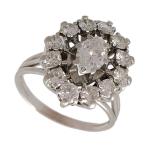 BAGUE en or gris sertie d'un diamant navette pesant 0.70 carat environ entouré de 12 diamants taille brillant poids 7.5 g TDD 59