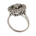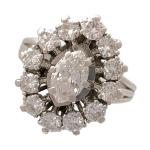 Lot 100 BAGUE en or gris sertie d'un diamant navette pesant 0.70 carat environ entouré de 12 diamants taille brillant poids 7.5 g TDD 59 MODIFICATION: monture en platine