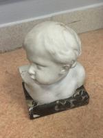 Ecole moderne Tête de chérubin Sculpture en marbre blanc, sur socle en marbre Portor H: 24 cm