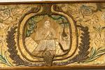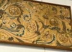 Saint en prière devant le Christ en croix Broderie Début du XVIIIème siècle (restaurations) 210 x 40 cm