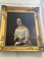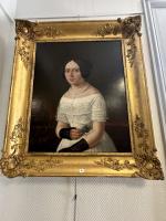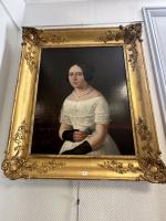 Ecole française du milieu du XIXème siècle Portrait de jeune fille à l'arrière-plan à l'église Huile sur toile 72 x 58 cm