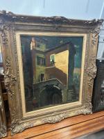 Ecole moderne Vue de village Huile sur toile 59 x 48 cm