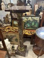SELLETTE en marbre à colonne agrémenté d'un chapiteau et d'une base en laiton (accidents) H: 112 cm