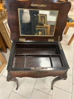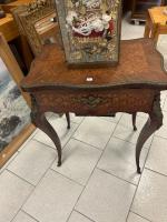 TRAVAILLEUSE en placage de bois de rose et marqueterie de cubes sans fond, de forme mouvementée, ornementation de bronze doré. Epoque Napoléon III (accidents) 75 x 61 x 43 cm