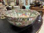 CHINE Coupe en porcelaine de Canton, à décor de scènes de cour en réserve Vers 1900 (égrenures) Diam: 28 cm