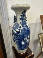 CHINE VASE en porcelaine céladon à décor en camaïeu bleu naturaliste Début du XXème siècle H: 58 cm