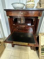 SECRETAIRE en acajou et placage d'acajou à montants flanqués de colonnes dégagées, ouvrant en façade par un abattant et trois tiroirs, dessus de marbre noir Epoque Empire (accidents) 140 x 98 x 45 cm
