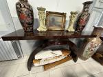 CONSOLE en placage de palissandre à piètement en demi-cercle renversé, ouvrant par un tiroir en ceinture. Années 1950 90 x 158 x 46 cm
