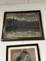 Ecole moderne Paysage au lac Huile sur toile signée en bas à gauche 65 x 85 cm