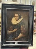 Ecole du Nord du XIXème siècle Portrait de femme à la fraise Huile sur panneau 27x20 cm