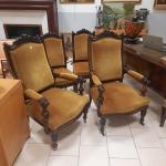 Suite de deux FAUTEUILS et deux CHAISES en bois naturel sculpté, garniture de velours jaune. Milieu du XIXème siècle