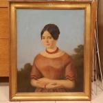 Ecole française du milieu du XIXème siècle Portrait de femme à la parrure de corail Huile sur toile (accidents) 73 x 60 cm