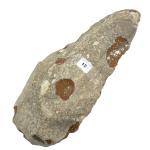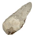 Grand biface amygdaloïde en quartzite marron à patine grise, choc et usures, France, Acheuléen ancien, 29 cm. Expert: Daniel Lebeurrier