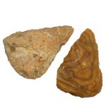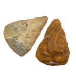 Lot de 2 bifaces sub-triangulaires, silex beige et orange, Acheuléen récent et Moustérien, 11 cm et 11,5 cm. Expert: Daniel Lebeurrier