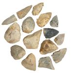 Lot de petits bifaces et grattoirs, silex beige, France, Acheuléen Récent et Moustérien, 15 pièces. Expert: Daniel Lebeurrier