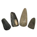 Lot de 4 haches polies, silex, pierre grise et noire,...