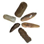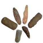 Lot de haches, lames, ciseaux et pointes, jaspe et silex, 6 pièces, Afrique sub-saharienne, Néolithique de 7,8 à 11 cm. Expert: Daniel Lebeurrier