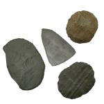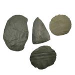 Lot de 3 grattoirs circulaires et 1 grattoir triangulaire, jaspe vert, Mali, Néolithique, de 5,6 à 9 cm. Expert: Daniel Lebeurrier