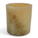 CHINE Pot à pinceau en jade jaune céladon de forme cylindrique Style Song H.: 7.5 cm