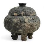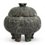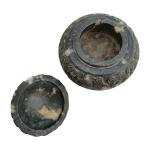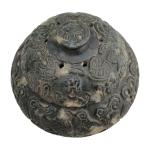 CHINE Brule-parfum couvert en stéatite, reposant sur six pieds, à décor gravé d'oiseaux stylisés et motifs géométriques Début du XIXème siècle H.: 12 cm