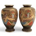 JAPON Satzuma Paire de vases ovoïdes H.: 30.5 cm