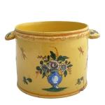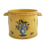 MONTPELLIER ou MARSEILLE Cache pot en faïence à décor de fleurs sur fond jaune XIXème H.: 16.5 cm (éclats et fêles)
