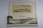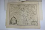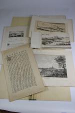 4 gravures : Carte du Pais de Retelois faicte par Jehan Jubrien-1641, publiée à Amsterdam en 1656-1657 par Johannes Jansonius dans son Atlas Novus, 50 x 38.5 cm (cuivre), texte en français au dos, plis central déchiré en tête sur 5 cm, légères rousseurs. Gravure sur cuivre " Vue du bourg d'Attigny sur Aisne, prise du côté de Givry ", vers 1780, 37 x 24.5 cm (cuivre), pâles rousseurs. Une vue de Rethel en Champagne dessinée par Adam Perelle (1640-1695) et gravée par Sébastien de Beaulieu (1612-1674), tirage du "Cabinet du Roi", vers 1727, 50.6 x 16.6 cm (cuivre), coupé au ras du premier cuivre il ne reste que l'encadrement du bas, traces de plis, rousseurs. Vue de Rethel, gravure sur cuivre dessinée par Johan Peeters, gravée par Merian. 1661, 32 x 13 cm (cuivre).