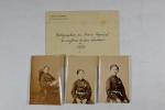 Louis-Napoléon BONAPARTE, 3 photographies du Prince impérial en uniforme de sous-lieutenant d'infanterie, juin 1870, 60-65 x 93-99 mm, beaux tirages sur papier albuminé