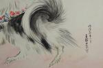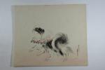 On joint une peinture, encre et aquarelle, sur carton d'un chien par un artiste japonais que l'on n'a pas identifié. 403 x 333 mm, rousseurs.